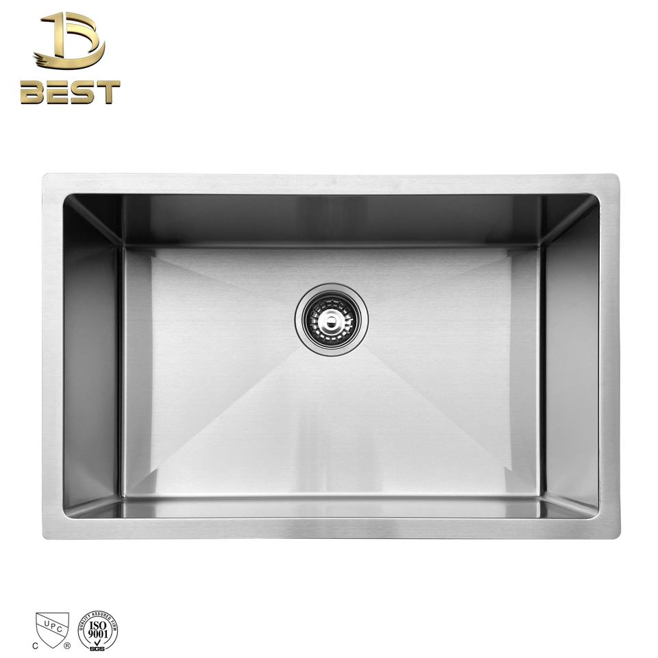 Fregadero de cocina de un solo tazón de acero inoxidable hecho a mano, precio de fábrica de China montado en la parte superior, diseño cepillado