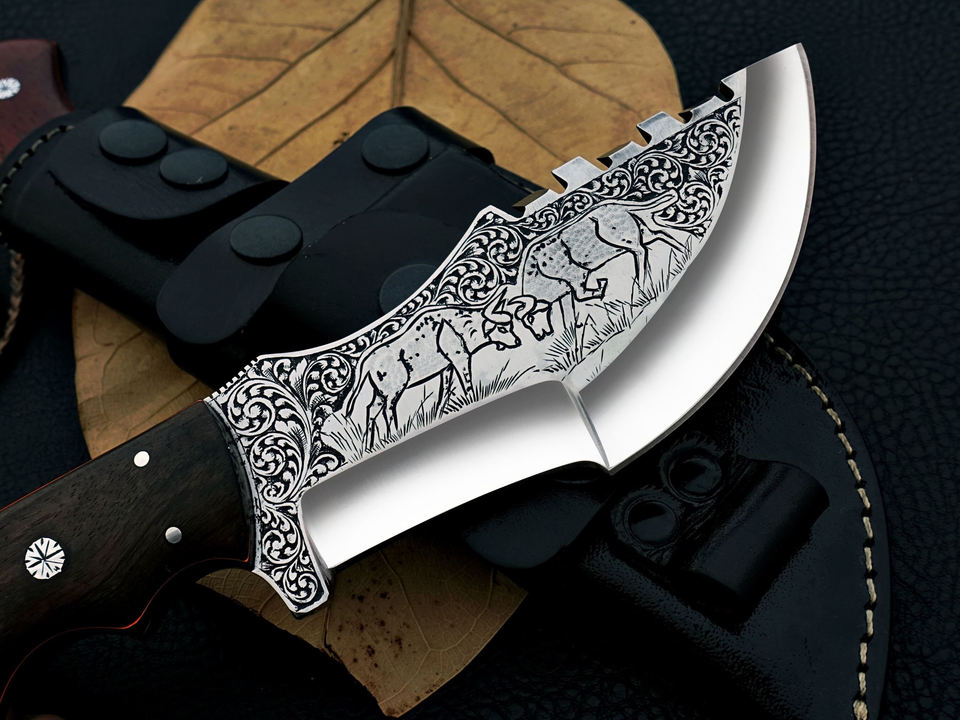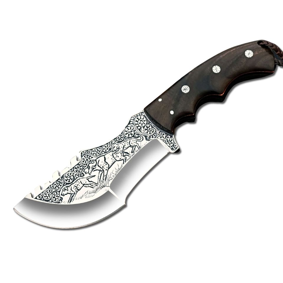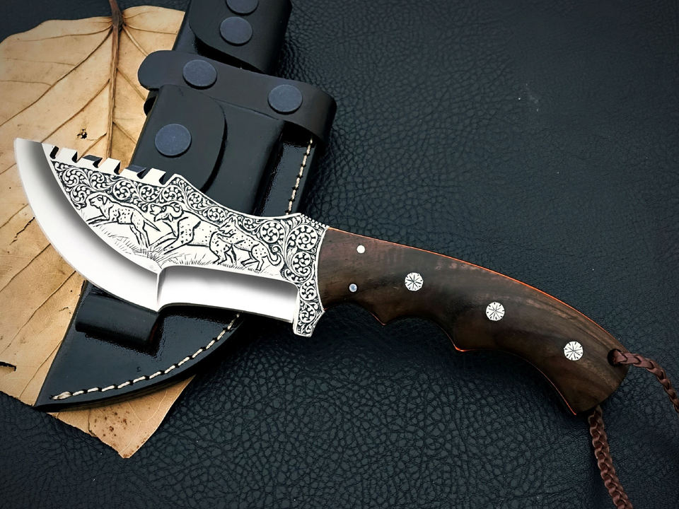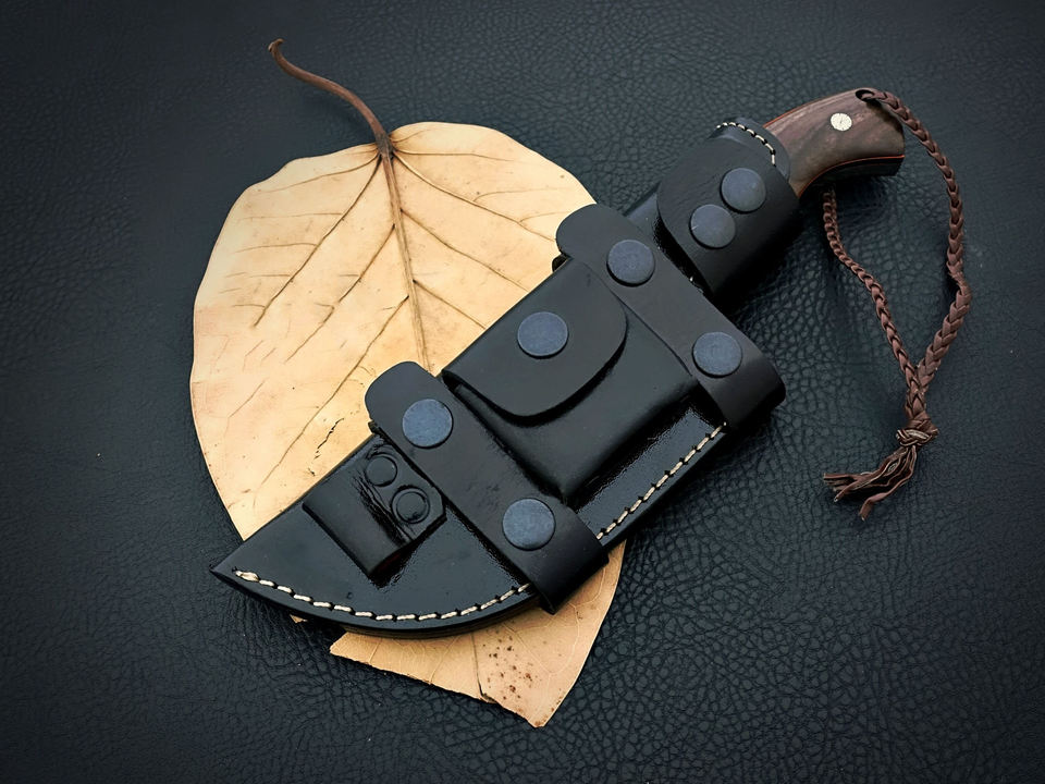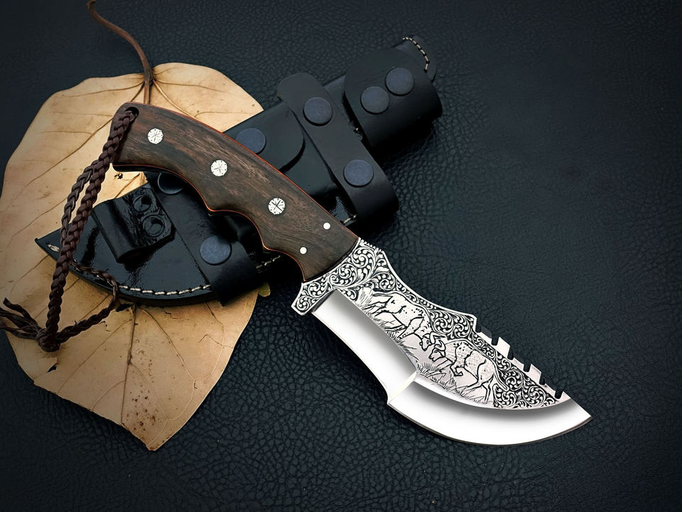 Cuchillo rastreador de acero inoxidable hecho a mano con mango de madera y Funda de cuero fino, cuchillo de supervivencia artesanal, cuchillos para acampar