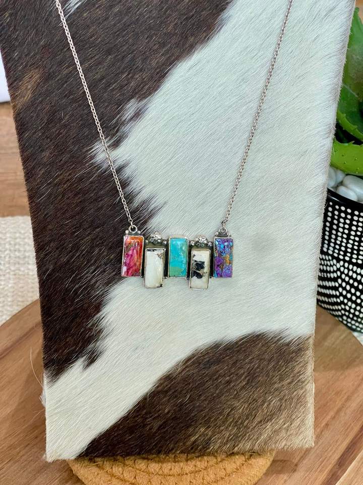 Collar de barra de piedra múltiple con ajuste de bisel de oro y plata de ley hecho a mano, joyería elegante para mujer, regalo artesanal único, uso diario