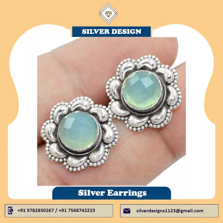 Nombre del Producto:Pendientes Hechos a Mano de Plata de Ley 925 con Gema Natural de Calcedonia