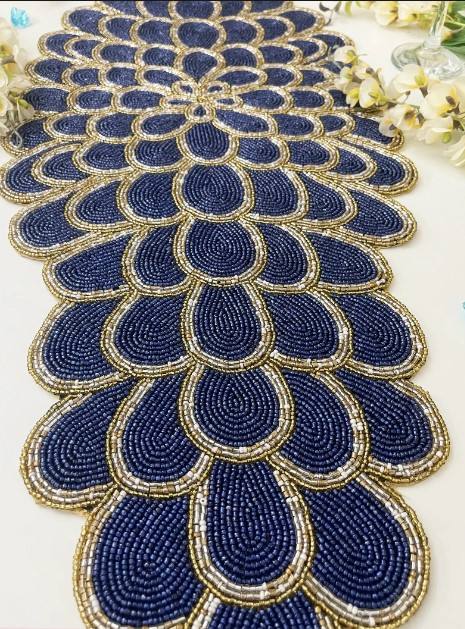 Juego de manteles individuales con cuentas florales para decoración de mesa con cuentas decorativas hechas a mano con estilo para acento de primavera