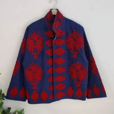 Chaqueta Suzani Bordada a Mano de Algodón, Abrigo Floral Indio, Estilo Boho Vintage, Ropa Exterior para Mujer, Chaqueta Suzani, Abrigo Corto al por Mayor