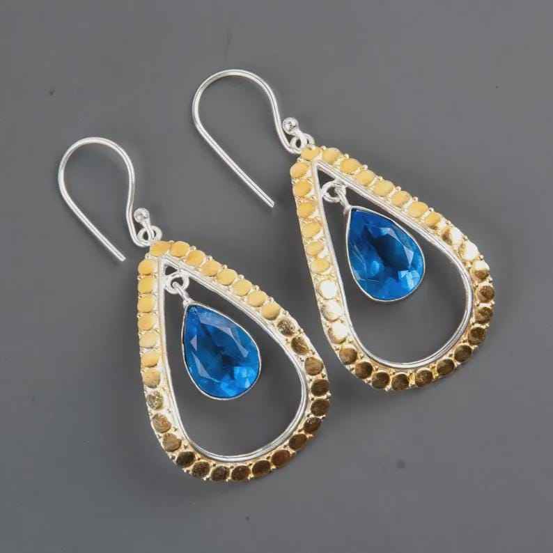 Palabra clave:Pendientes de botón de topacio azul con joyería de piedras preciosas brillantes colgantes