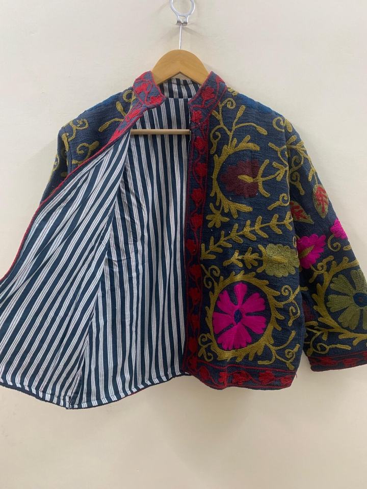 Chaqueta de invierno para mujer hecha a mano TNT Suzani, abrigo corto con tela bordada, ropa de invierno acogedora