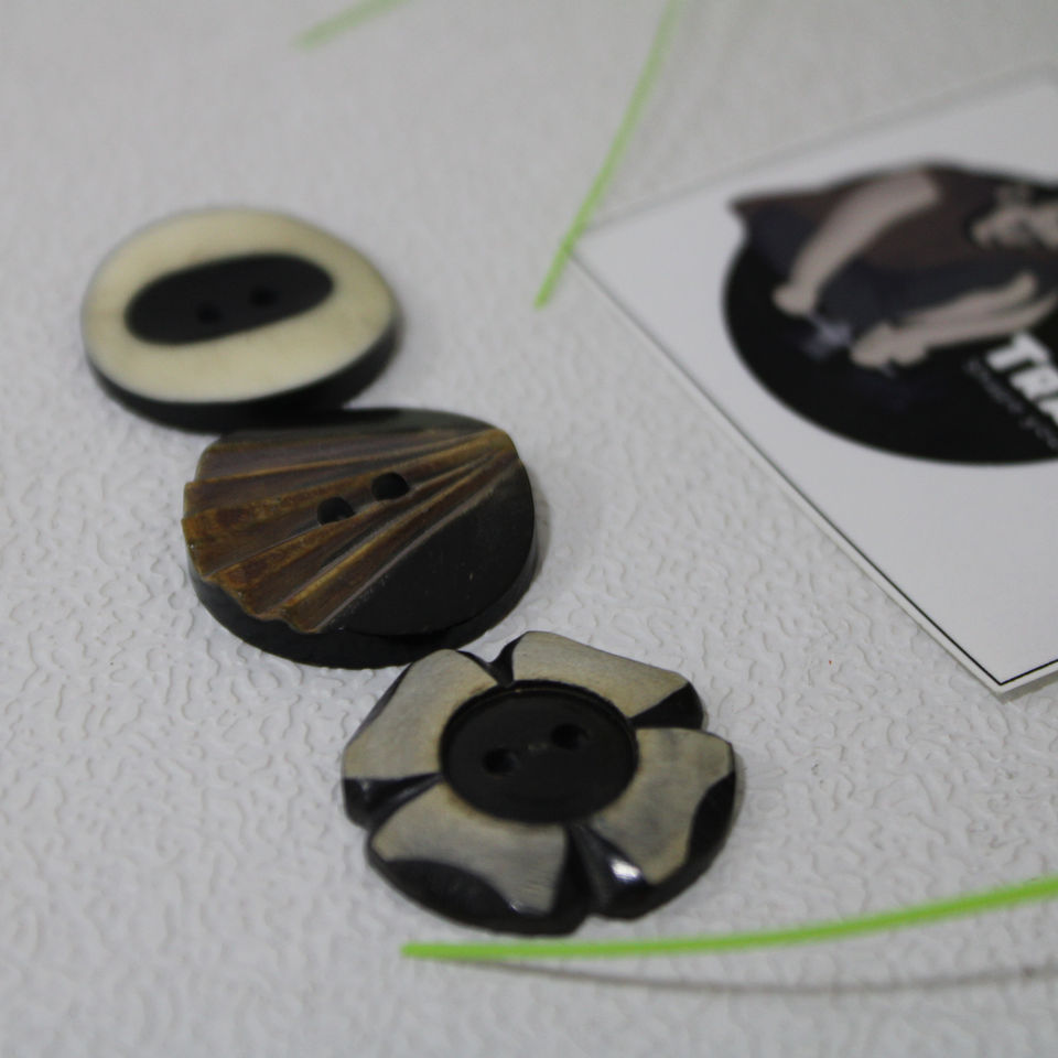 Botones de cuerno de búfalo hechos a mano blanco y negro marrón con diseños circulares y florales tallados para decoración de ropa