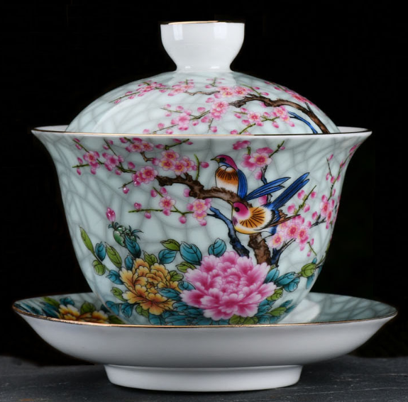 Juego de té tradicional Gaiwan hecho a mano, taza de porcelana Gong Fu de 150ml con tapa y platillo, tetera de cerámica artesanal