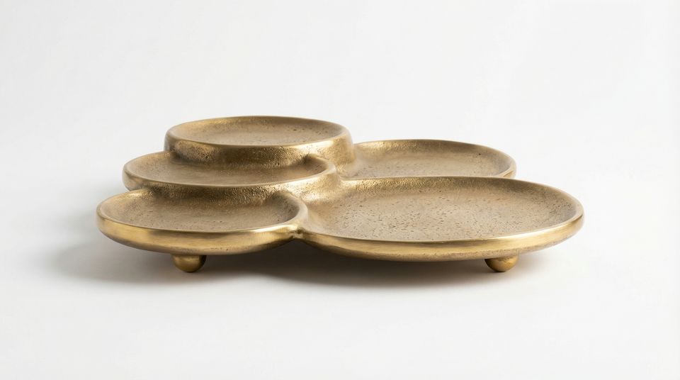 Bandeja de Travertino Hecha a Mano, con Acabado Pulido, Color Níquel Envejecido, Estilo Orgánico, Escultural y Moderno, para Decoración de Bodas o Tocador