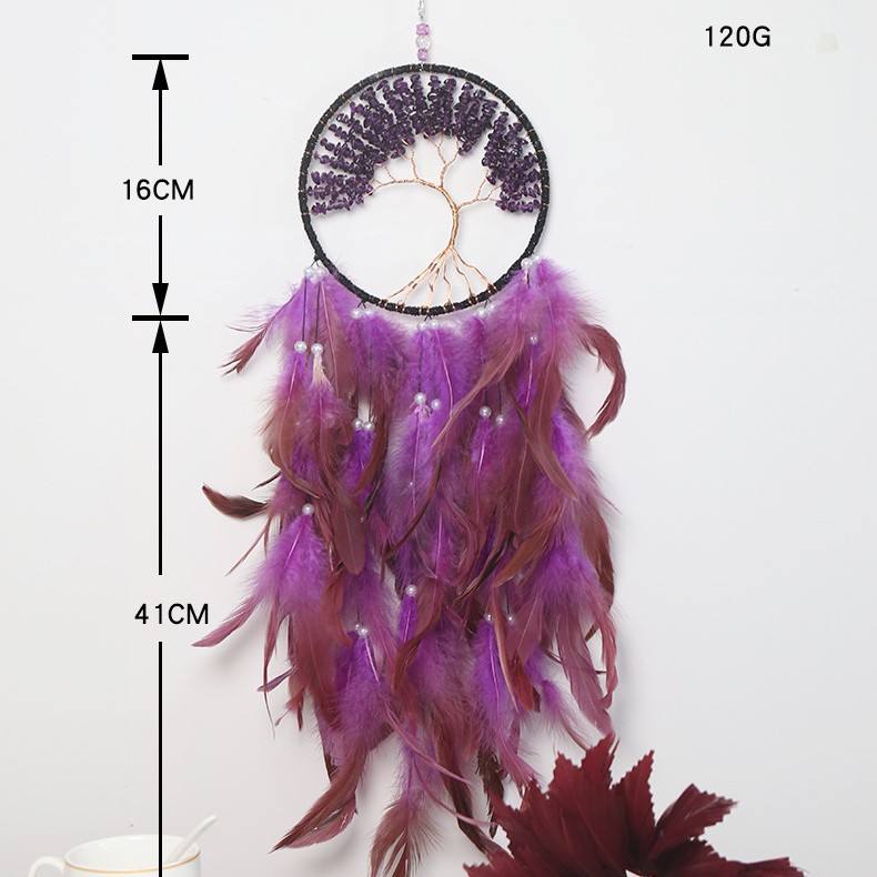 Atrapasueños de plumas de árbol de la vida hecho a mano, decoración de pared, adorno colgante para bodas, decoración del hogar