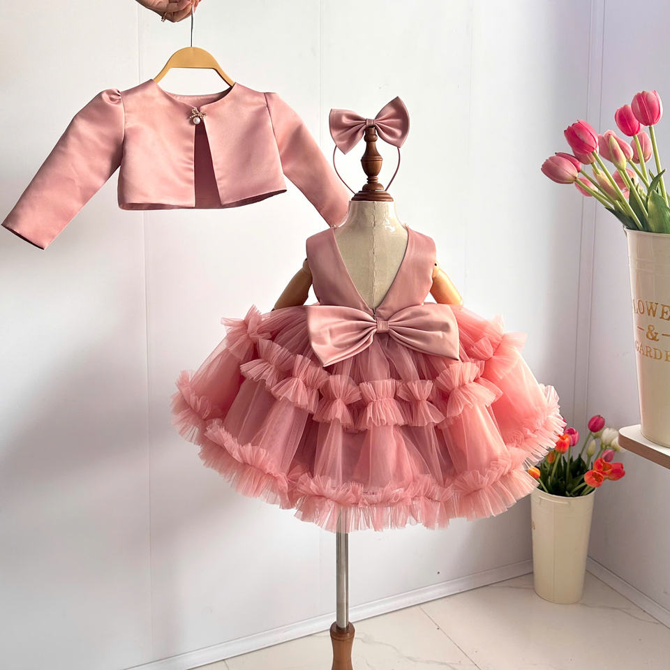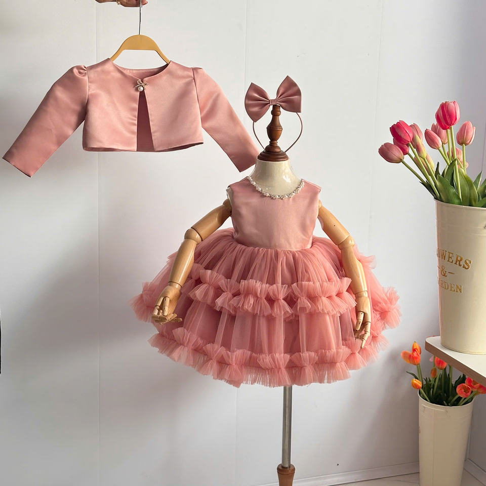Nombre del producto:Vestido de dos niveles con chaqueta desmontable Collar de cuentas hecho a mano