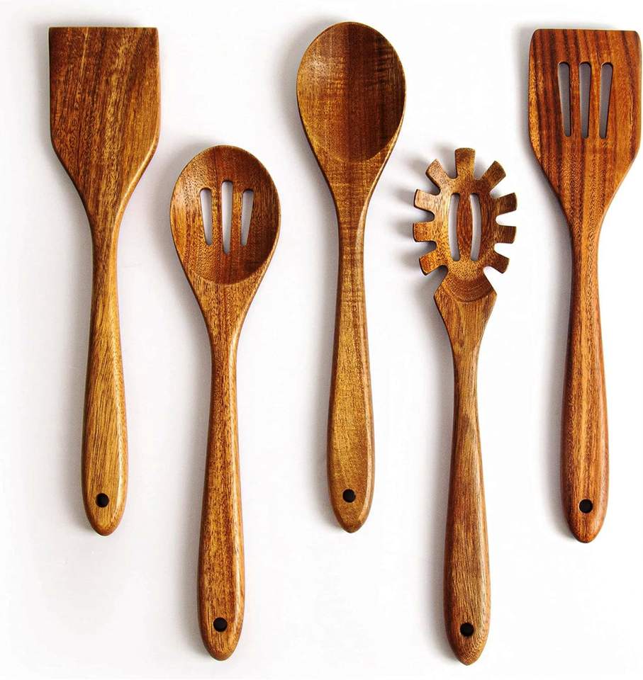 Juego de utensilios de cocina de madera de 6 piezas único hecho a mano incluye servidores de ensalada de 2 cucharas de madera utensilios de cocina de primera calidad