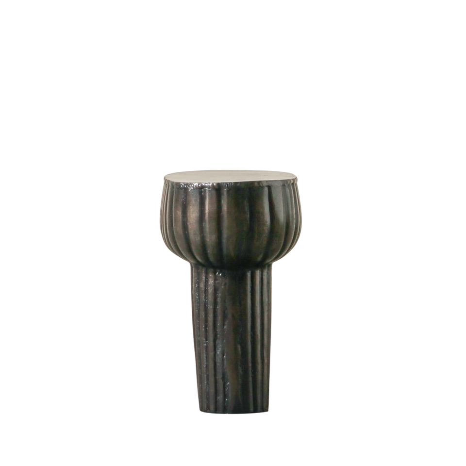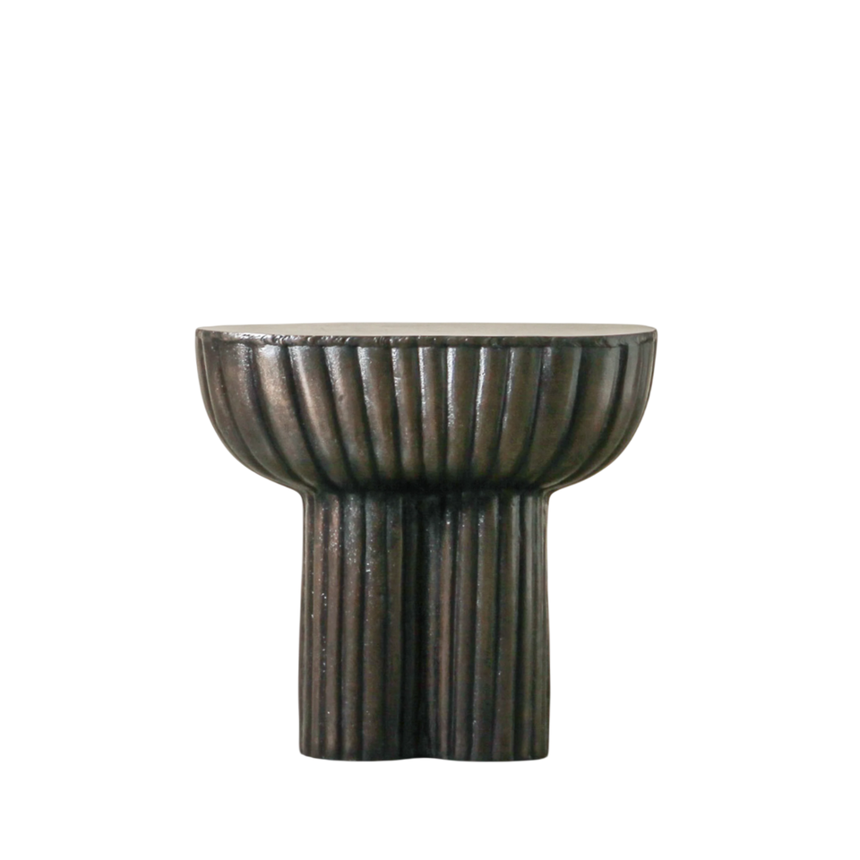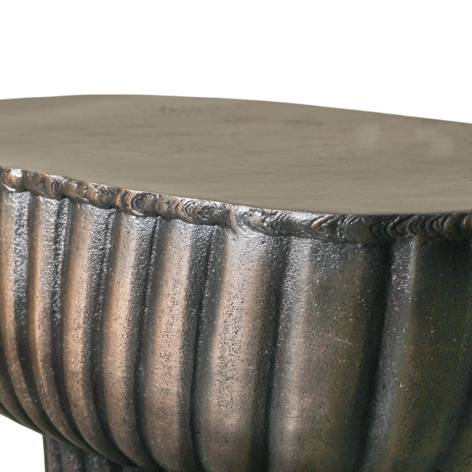 Mesa Auxiliar de Aluminio de Diseño Único Hecha a Mano, Taburete Ovalado con Incrustaciones de Hueso, Consola para Sala de Estar y Dormitorio