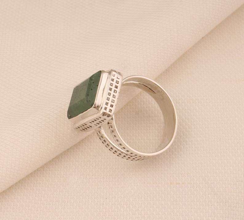Anillo de Cuarzo Cereza Verde Esmeralda Plata de Ley 925 Sólida Unisex Hecho a Mano Piedra Preciosa Natural para Aniversario o Boda