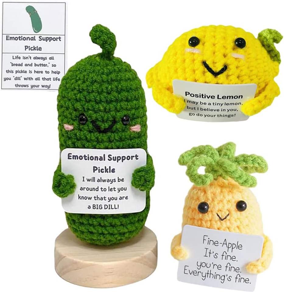 Pepinillo encurvado de ganchillo hecho a mano, regalo de apoyo emocional, muñeco de patata tejido, juguete de fruta, piña, llaveros