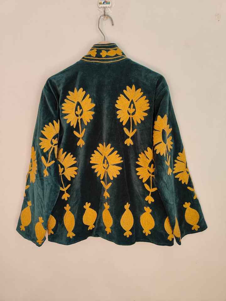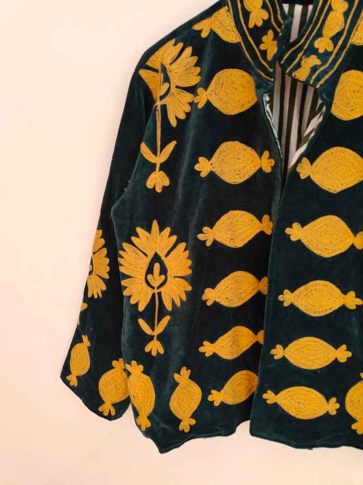 Chaqueta Bomber Bordada en Terciopelo Hecha a Mano con Motivo Suzani de Granada, Reversible y Ecológica, Estilo Bohemio de Invierno