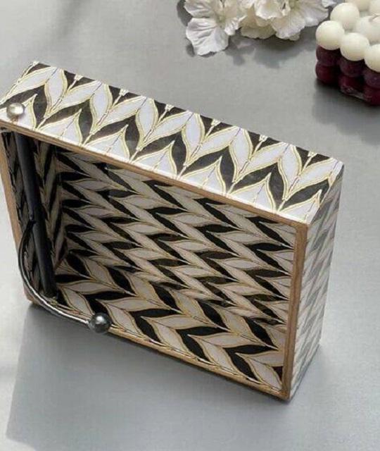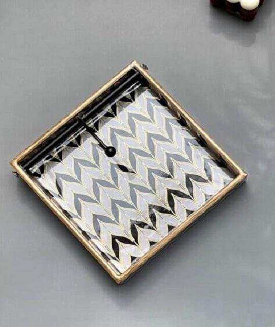 Bandeja de soporte de tejido verde victoriano hecho a mano bandeja de Mandala de madera cuadrada elegante estampado étnico para decoración de comedor MDF de inauguración de la casa