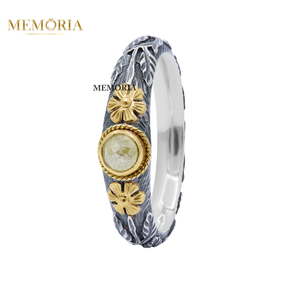 Nombre del producto:Zafiro amarillo y Diamante Anillo de plata y oro