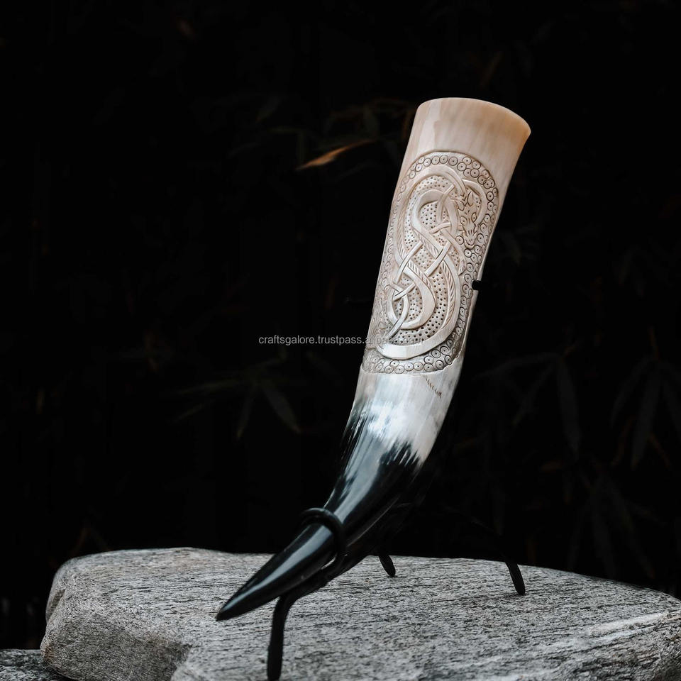 Taza de Cuerno Vikingo Hecha a Mano, Ecológica, Personalizable, Estilo Animal, Material Orgánico, Decoración del Hogar, Técnica Pulida
