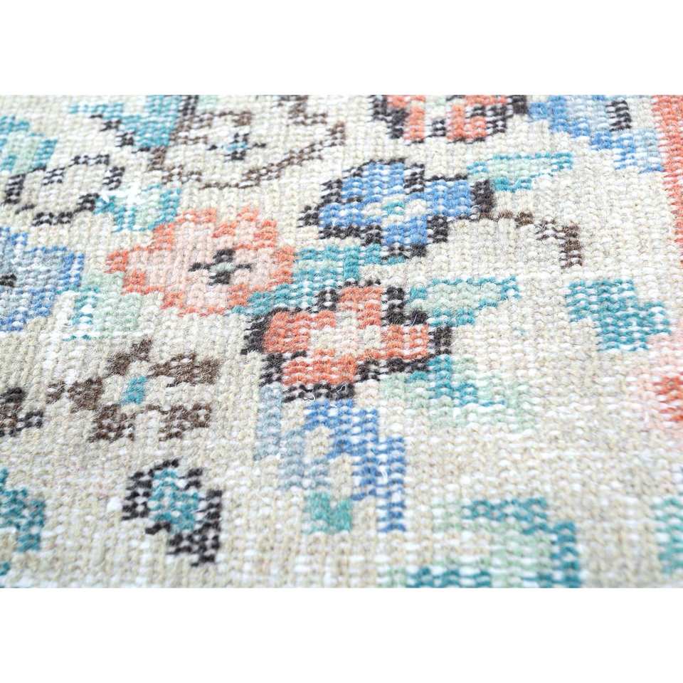 Alfombra de Lana Azul Vintage Hecha a Mano con Patrón Floral Abstracto, Alfombra Rectangular Trenzada para Sala de Estar, Pasillo, Hogar -Pae-2938
