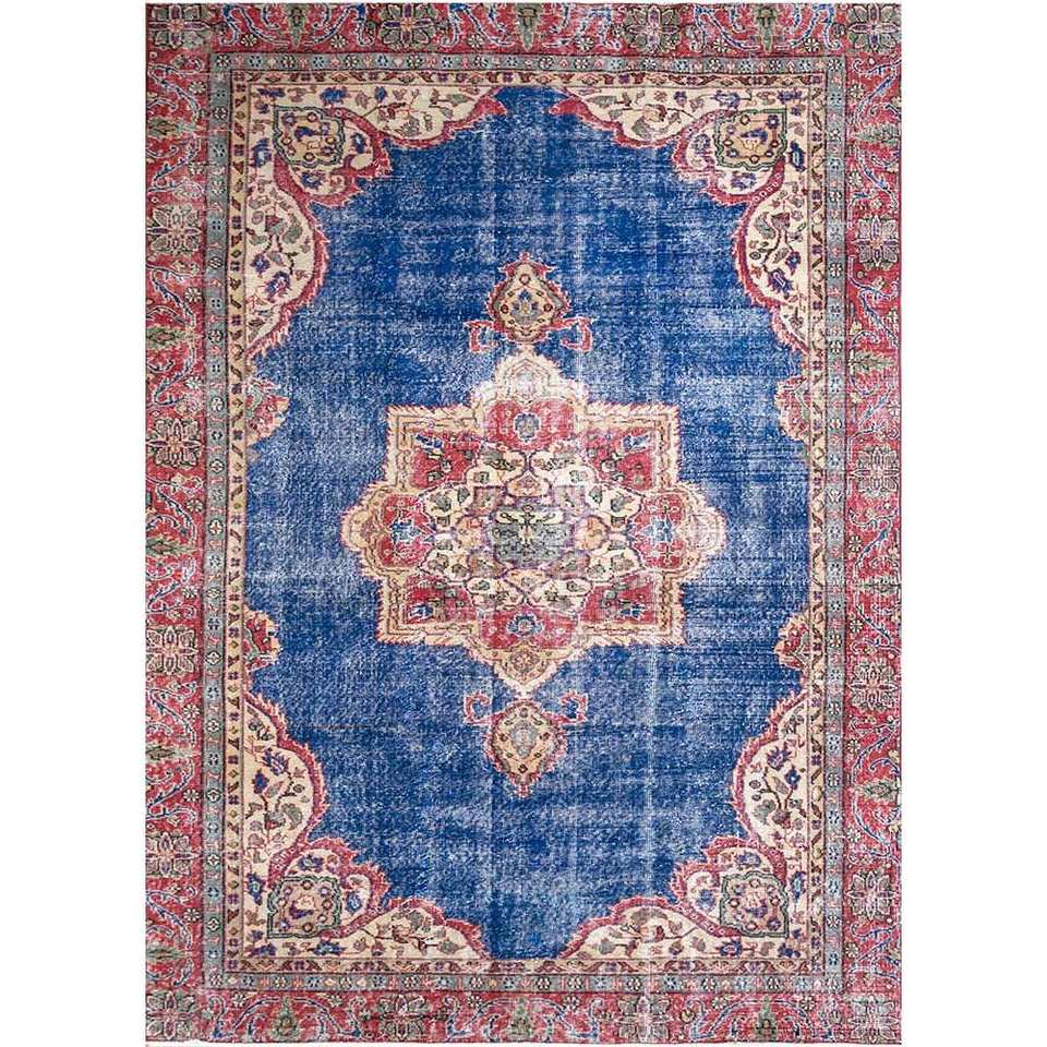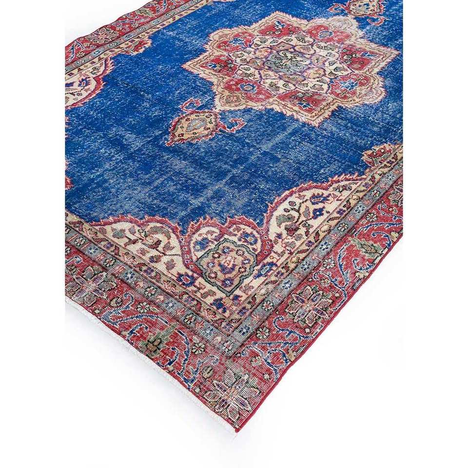 Alfombra de Lana Azul Vintage Hecha a Mano Pae-2249, Rectangular, con Medallón, de Altura Media, Abstracta, para Sala de Estar, Pasillo, para Adolescentes
