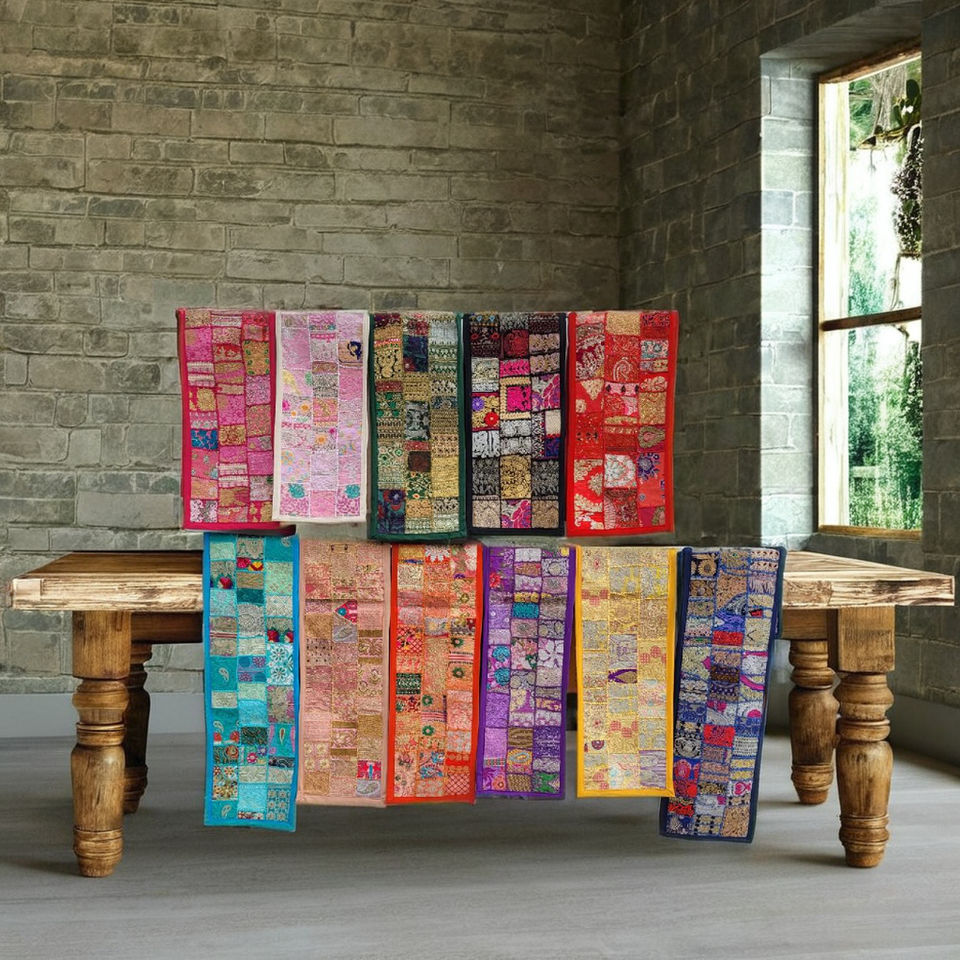 Camino de Mesa Bordado a Mano Estilo Vintage, Estilo Indio Antiguo, Material de Algodón, Duradero y Ecológico