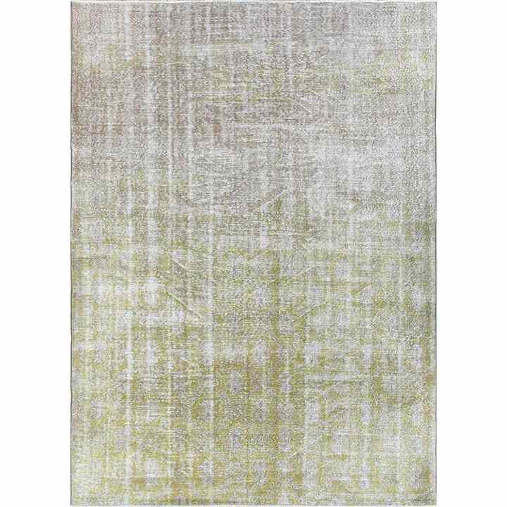 Alfombra de Lana Verde Vintage Hecha a Mano, Diseño Abstracto Bohemio para Entrada, Sala de Estar o Pasillo - Pae-2328