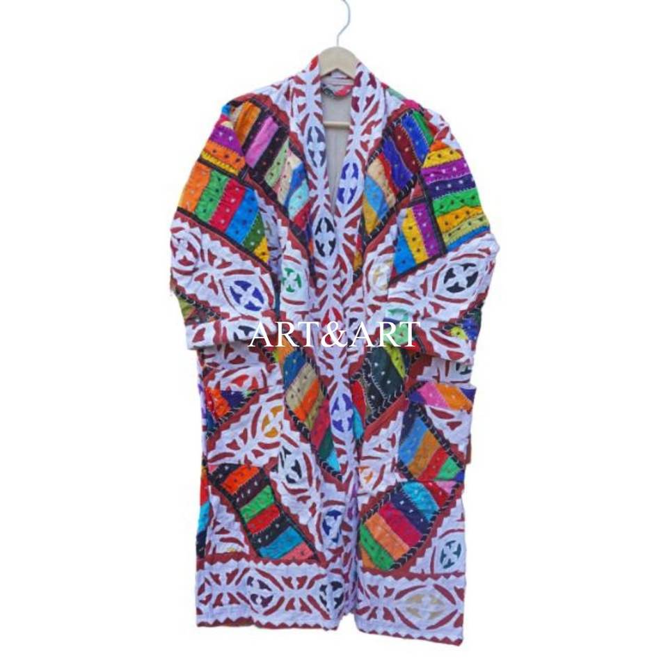 Kimono Corto Hecho a Mano con Diseño Floral Vintage, Acolchado, Suave, Elegante, con Cuello en V, para Invierno y Verano