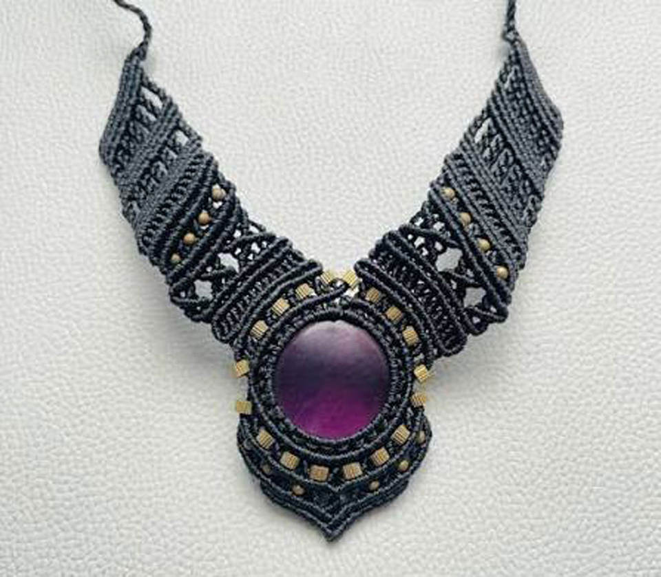 Collar de Macramé Vintage Hecho a Mano con Colgante de Piedra Preciosa Ovalada de Lapislázuli de 25-30 mm en Cadena de Plata para Boda y Regalo