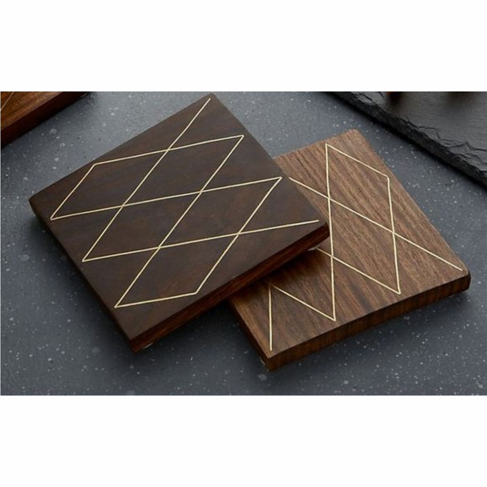 Juego de Posavasos Hechos a Mano de Madera de Nogal con Incrustaciones de Latón | Posavasos Geométricos de Lujo | Posavasos Cuadrados Decorativos de Madera para Regalos