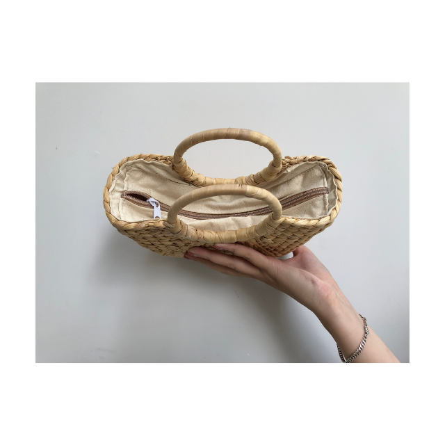Bolso de jacinto de agua hecho a mano con tela de algodón interior y diseño floral bordado, ideal para regalo o moda diaria de mujer