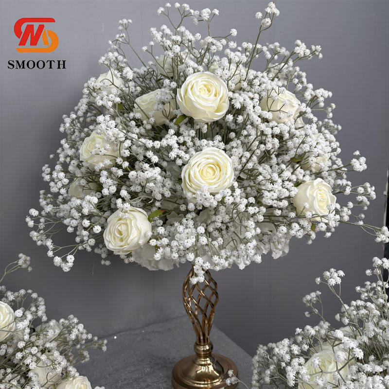 Centro de Mesa de Flores Artificiales Blancas Hechas a Mano, Bola Lisa para Decoración de Bodas y San Valentín