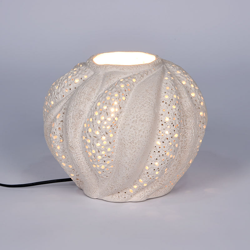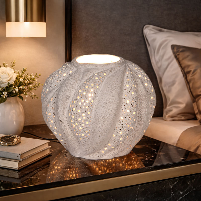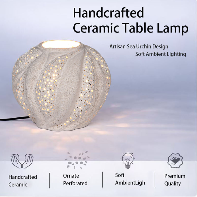 Lámpara de Mesa de Cerámica Blanca Ecológica Hecha a Mano, Diseño de Erizo de Mar, Luz Ambiental Decorativa para Dormitorio, Sala de Estar, Hotel, Interiores