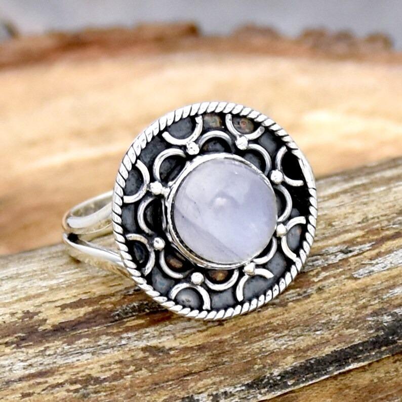 Anillo de compromiso hecho a mano al por mayor, piedra lunar arcoíris de Fuego Azul Natural, chapado en rodio, Plata de Ley 925, anillo de compromiso de moda