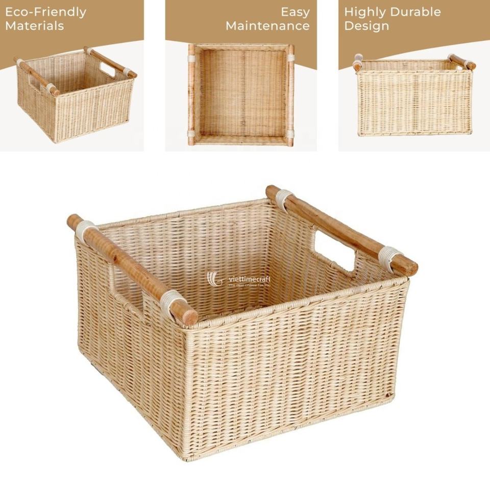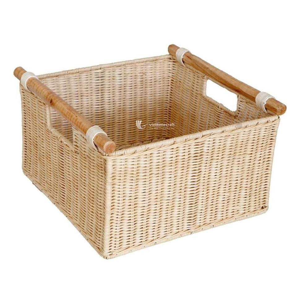 Caja Redonda de Almacenamiento de Mimbre Hecha a Mano, Cesta Organizadora de Mimbre con Asa, Organizador Artesanal Multiusos para Venta al por Mayor