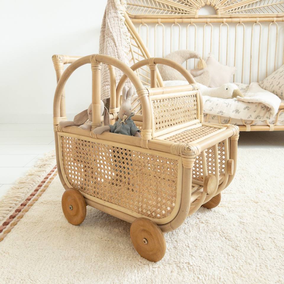 Cochecito de Mimbre Hecho a Mano para Muñecas, Juego de Cochecito de Ratán, Cochecito de Juguete de Alta Calidad para Muñecas