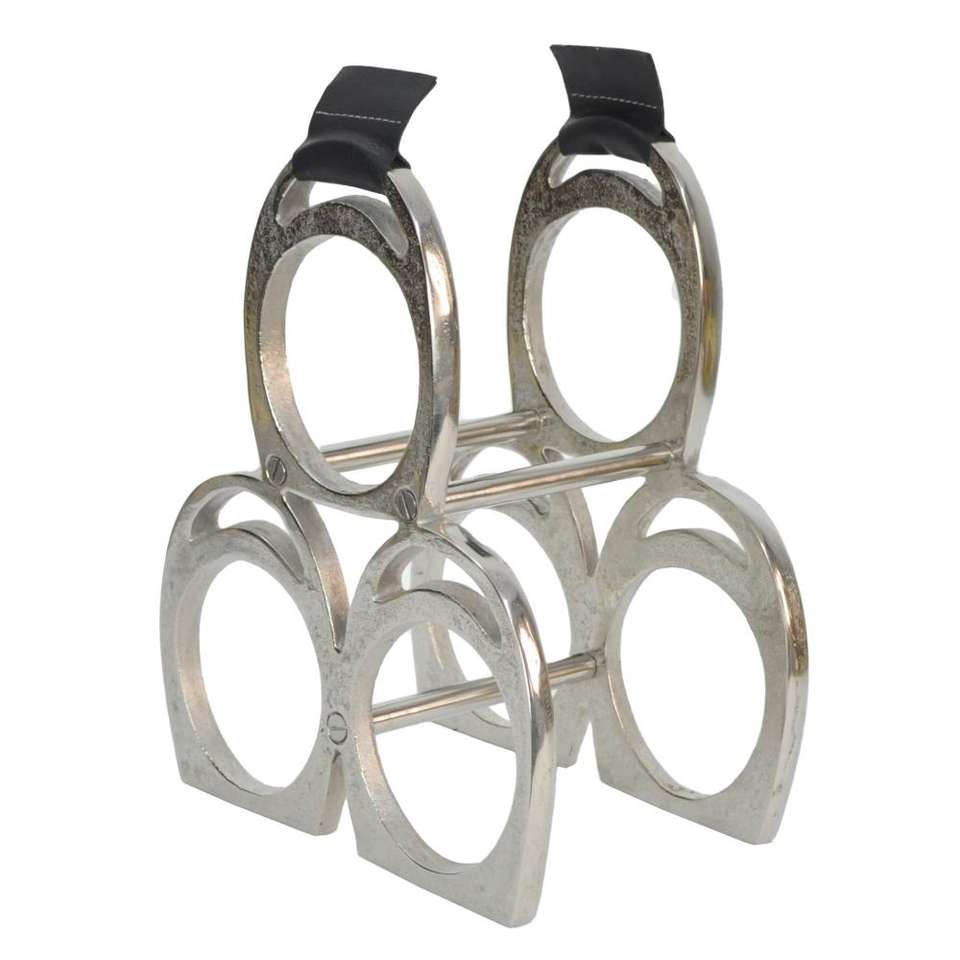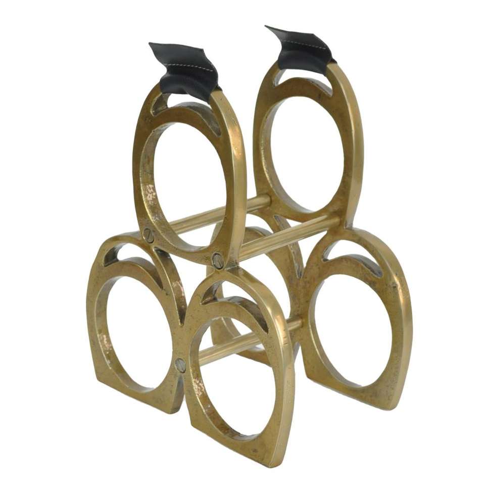 Exhibidores de Vino Hechos a Mano con Acabado Dorado, Soporte para Botellas Estilo Estribo de Caballo, Artículos para Mesa o Encimera