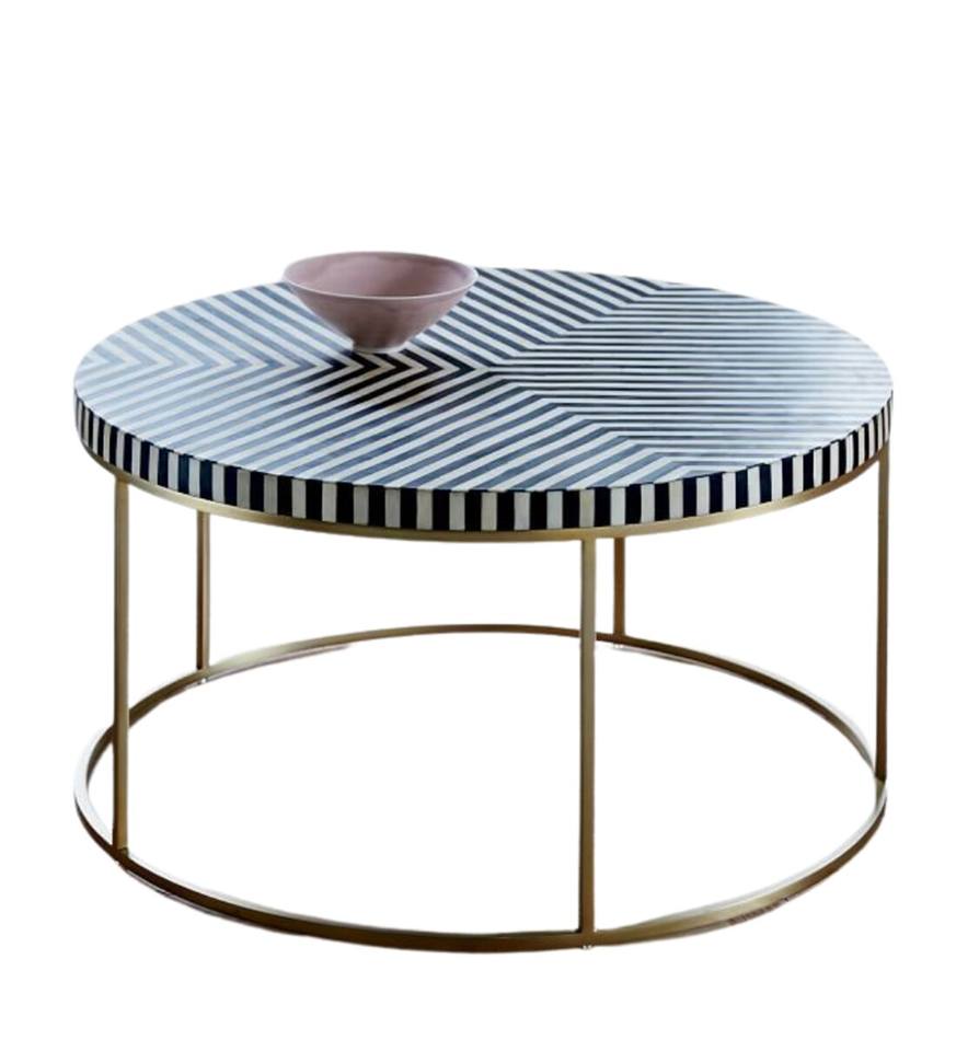 Hecho a mano con forma redonda al por mayor personalizar buena calidad redondo Metal blanco mármol superior para merienda mesa de centro para sala de estar