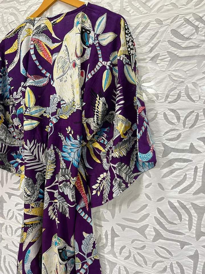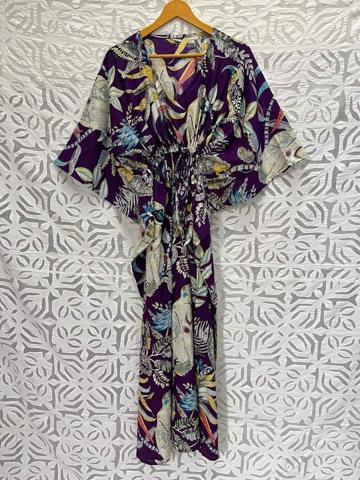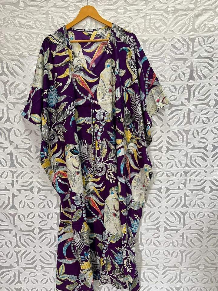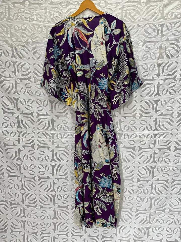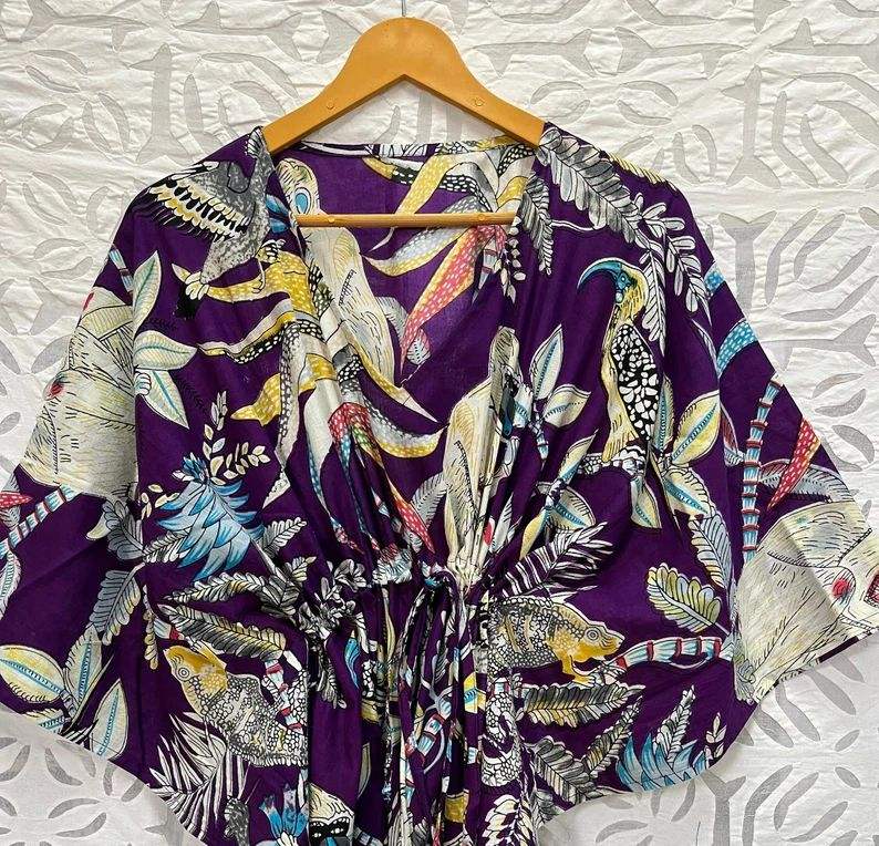 Vestido de noche largo hasta el suelo de algodón orgánico para mujer, Vestido de playa étnico hecho a mano, caftán corto, estampado de bloque de mono, vestidos informales