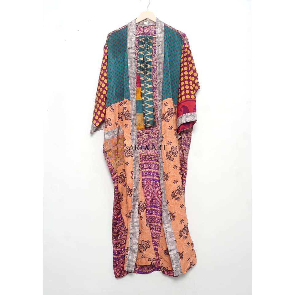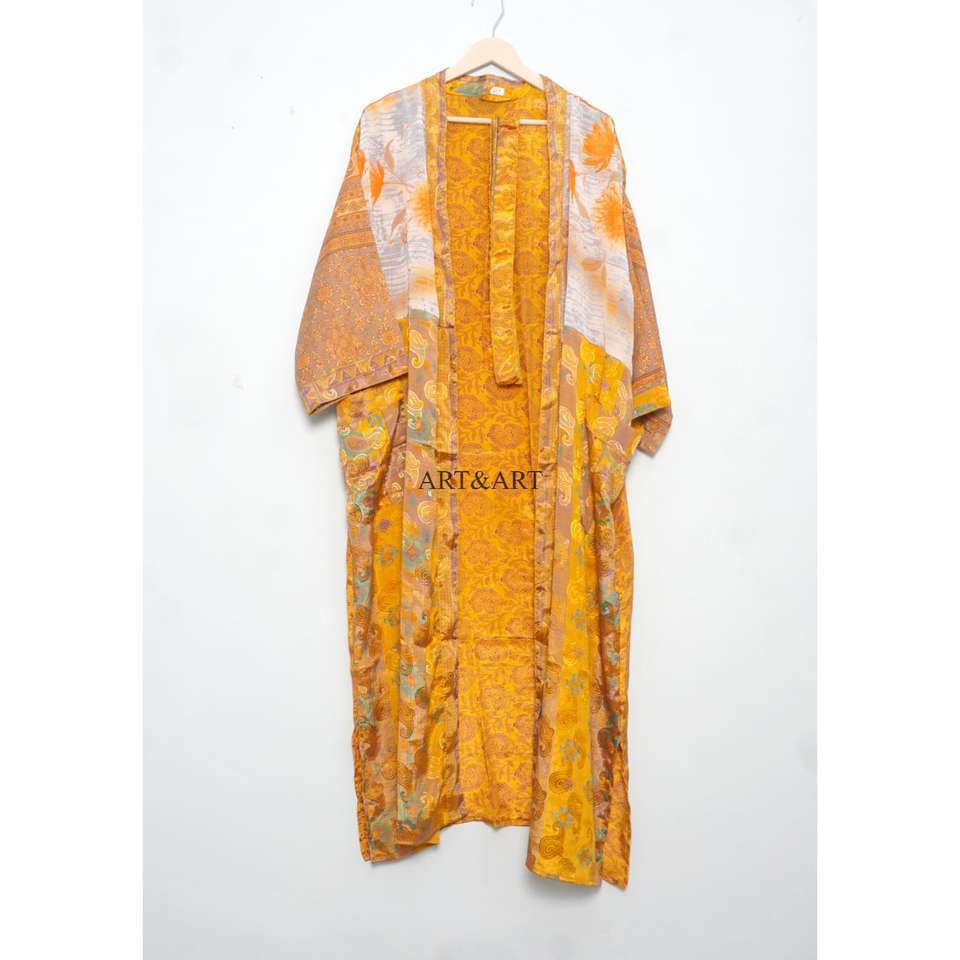 Conjunto de Bata de Seda Hecha a Mano para Mujer con Cierre de Cordón, Estampado Floral Elegante, Tela Suave de Secado Rápido y Transpirable, Ideal para Viajes y Cosméticos