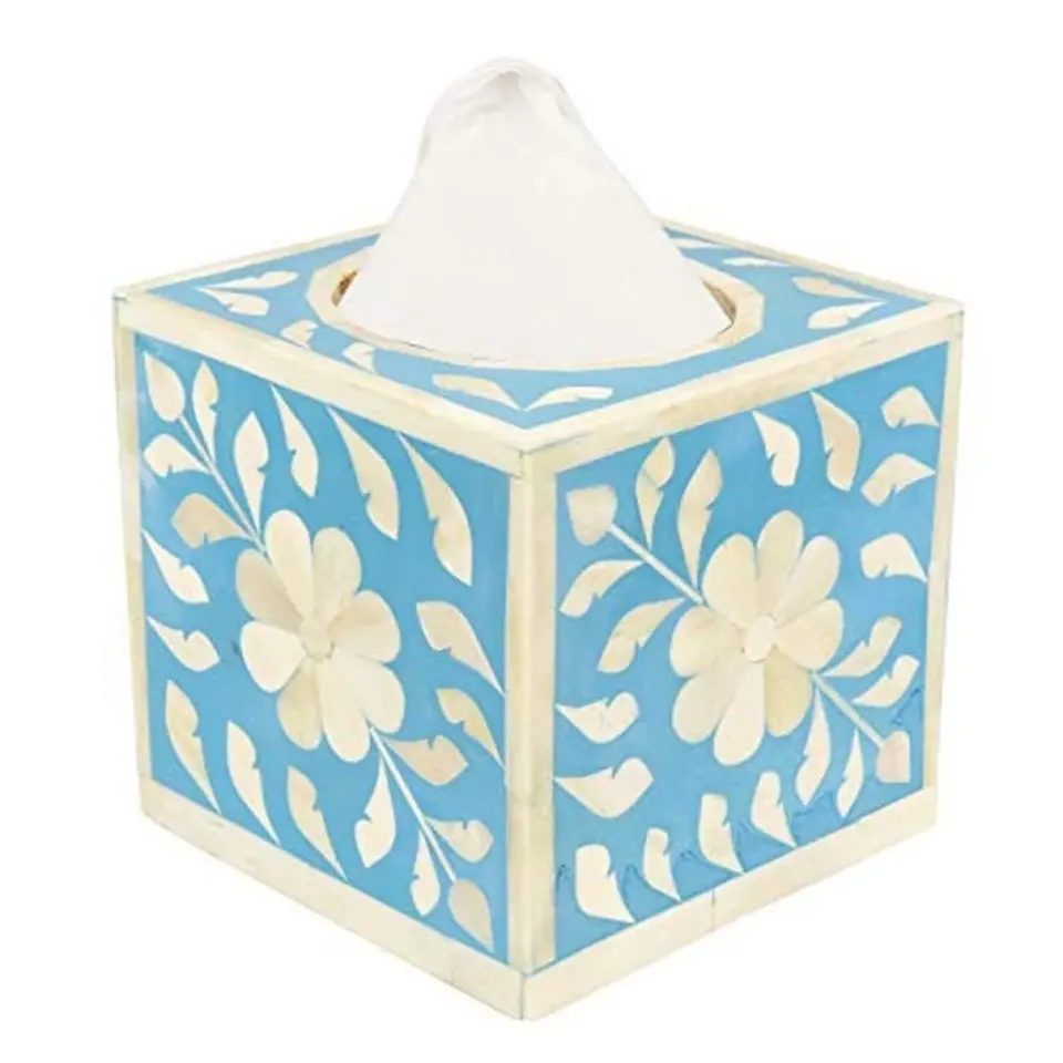 Caja de pañuelos con incrustaciones de hueso de madera hecha a mano, servilletero multiusos increíble para comedor, cocina, baño, mesa, caja de almacenamiento de pañuelos
