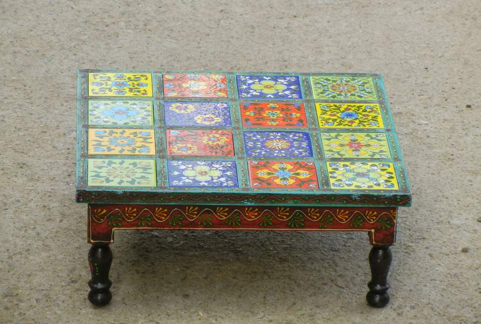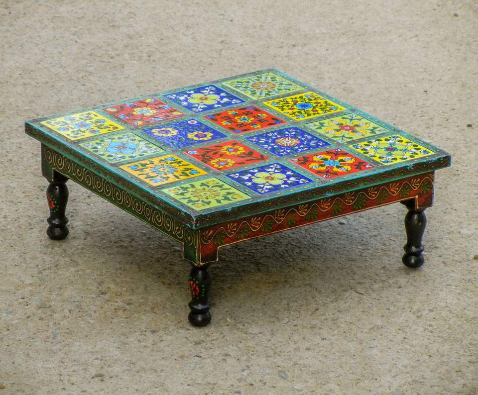 Product name:Wooden And Ceramic Tile Chowki Table
