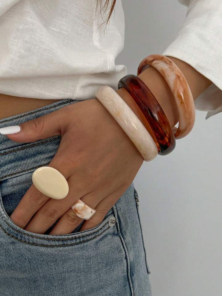 Juego de 3 Brazaletes de Madera Hechos a Mano, Gruesos y Grandes, en Colores Personalizados, Técnica Pulida, para Mujer, Feng Shui, Ángel