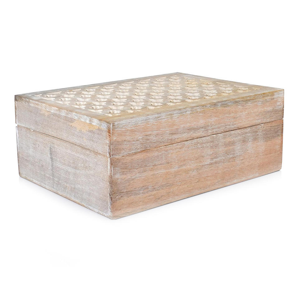 Caja de almacenamiento tallada de madera