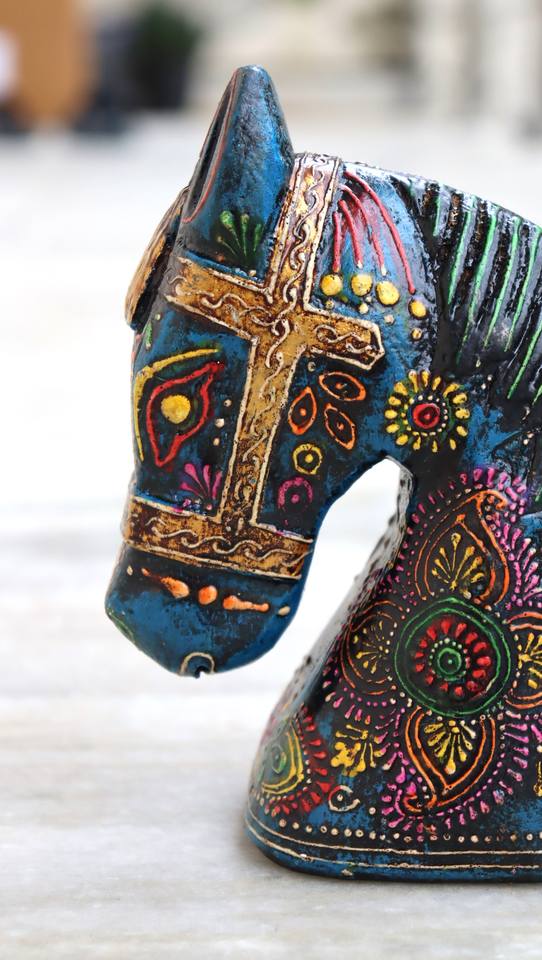 Nombre del producto:Figura de cabeza de caballo pintada de madera