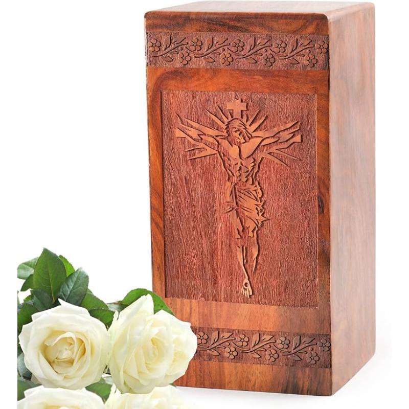 Urnas conmemorativas de madera hechas a mano para cenizas humanas de adultos urnas de cremación grabadas caja de urna de entierro decorativa funeraria de la India