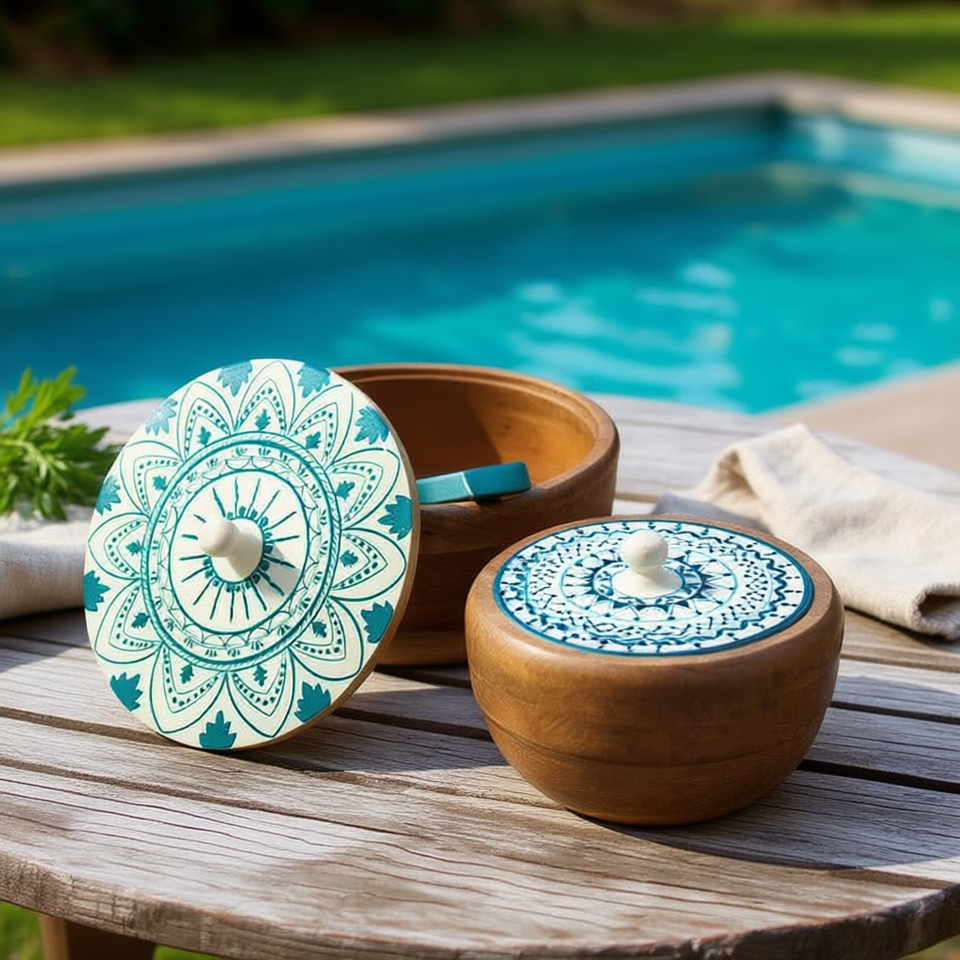 Caja de Madera Hecha a Mano para Roti con Organizador de Especias, Contenedor de Chapati para Cocina, Tarro Tradicional para Especias