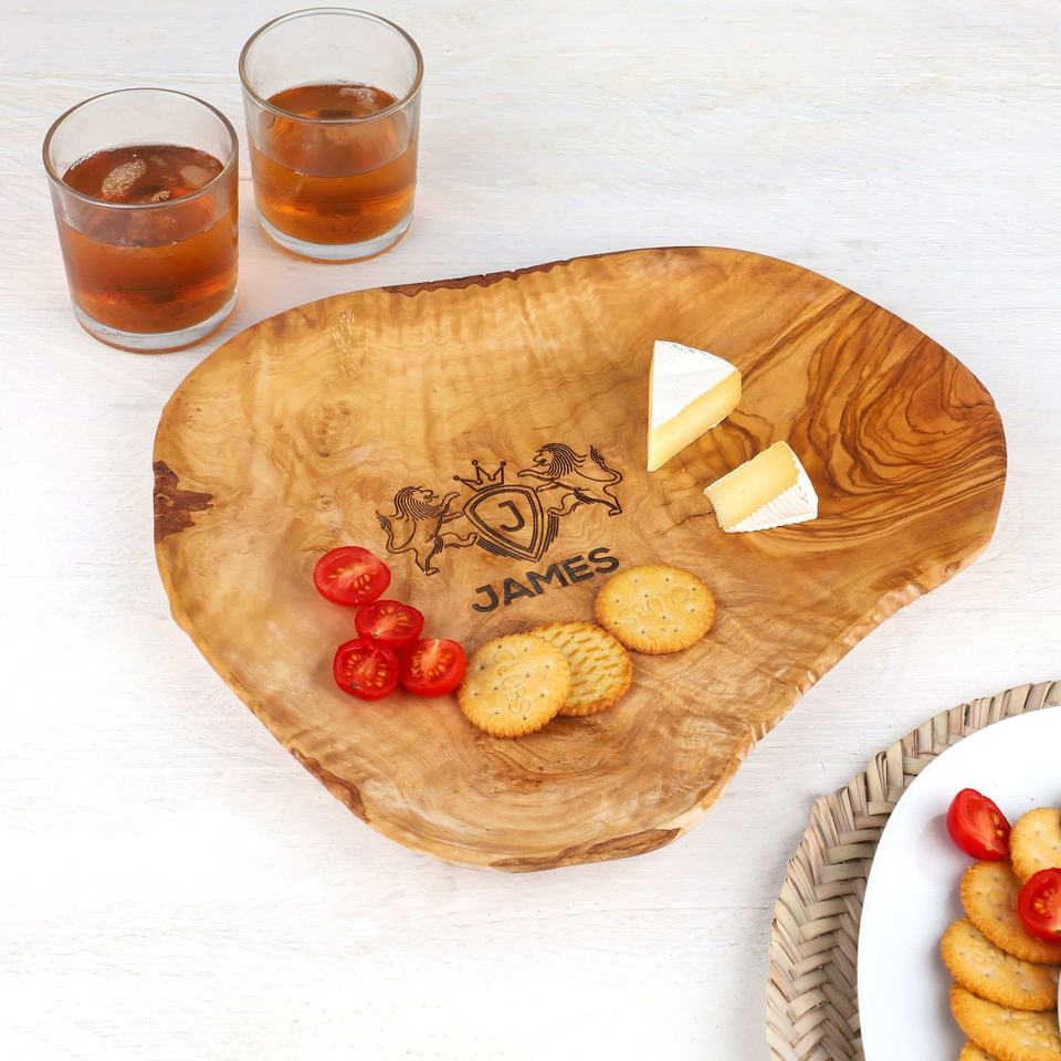 Plato para servir de madera de Olivo natural hecho a mano, tablero rústico personalizado para queso, aperitivos, frutas, platos y bandeja