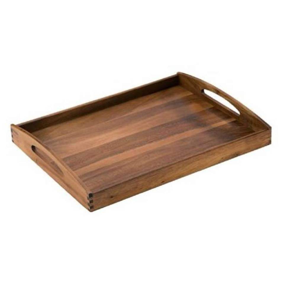 Bandeja de Servir de Madera Hecha a Mano con Diseño Incrustado, Bandeja Rectangular Decorativa para Mesa de Centro, Plato de Madera Estilo Boho para Decoración del Hogar