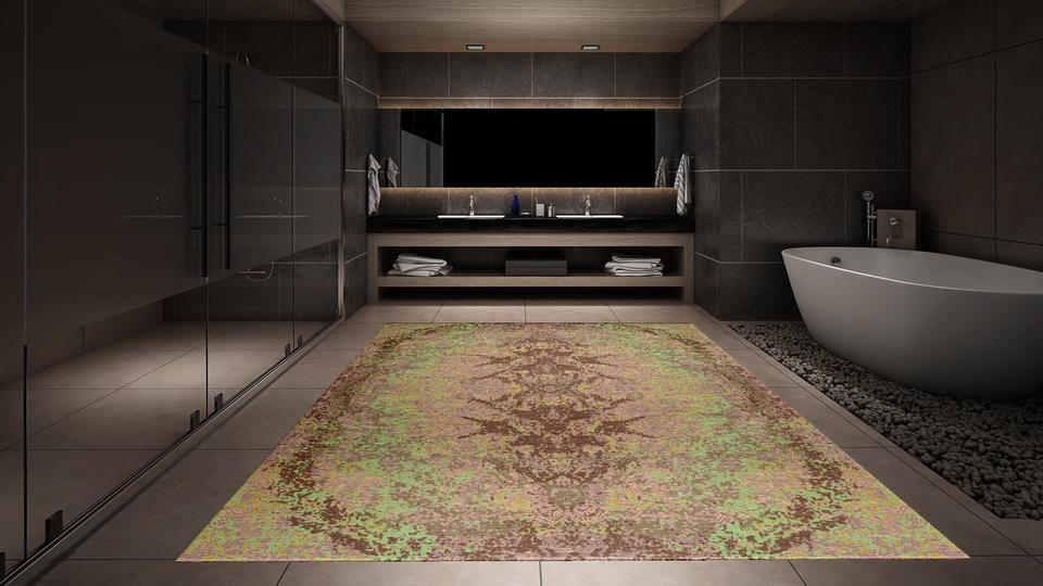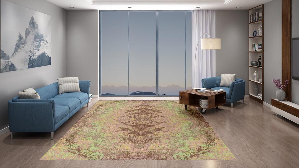 Alfombra decorativa de lana hecha a mano, alfombra anudada a mano con patrón abstracto duradero para sala de estar, dormitorio, puerta o uso doméstico al aire libre