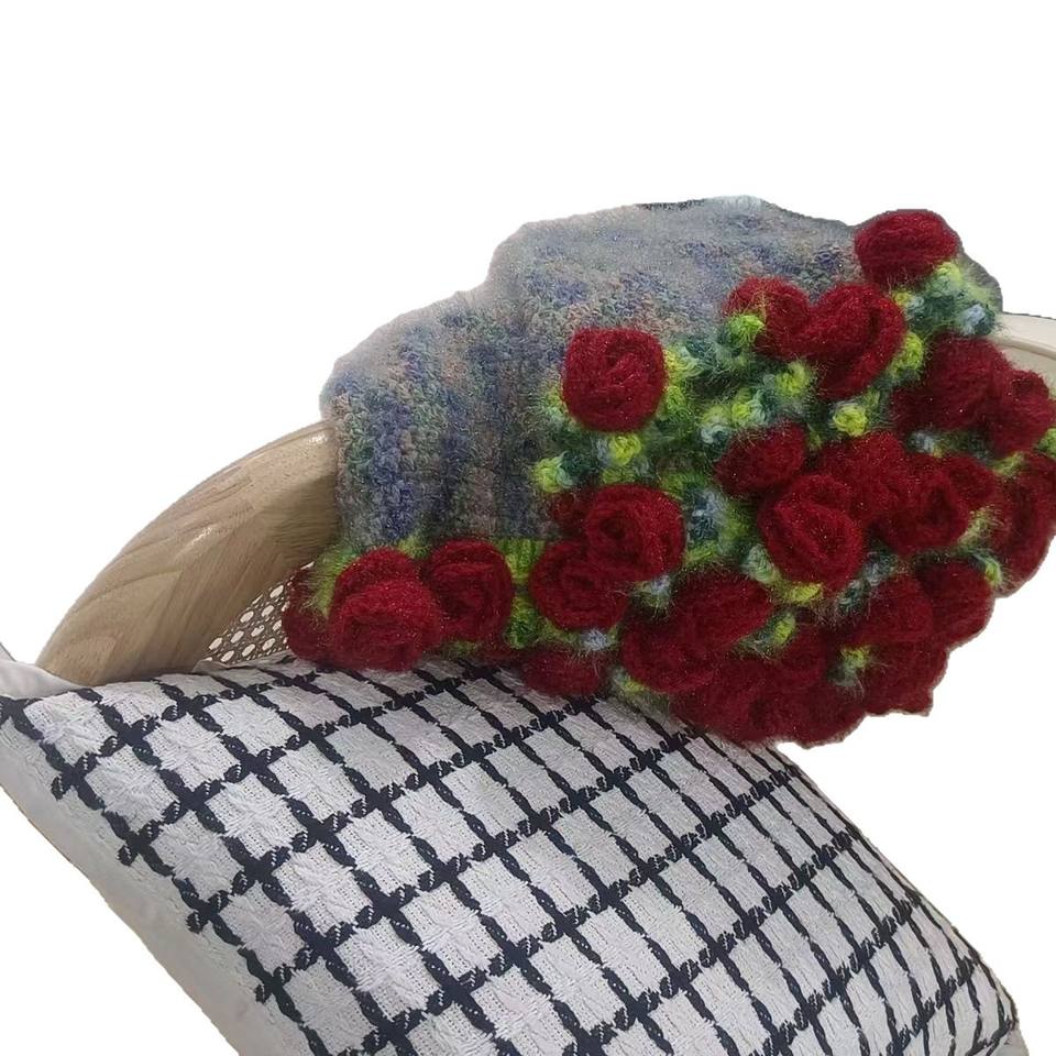 Manta de Ganchillo de Lana Hecha a Mano, Rectangular, con Patrón de Ramo de Rosas, Antipelusas, Cálida y Cómoda para el Invierno, Producto Terminado