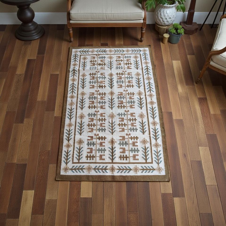 Alfombra Durrie de Lana Hecha a Mano con Patrón Abstracto, Tejido Plano de Pelo Corto, Moderna y Ecológica, para Sala de Estar